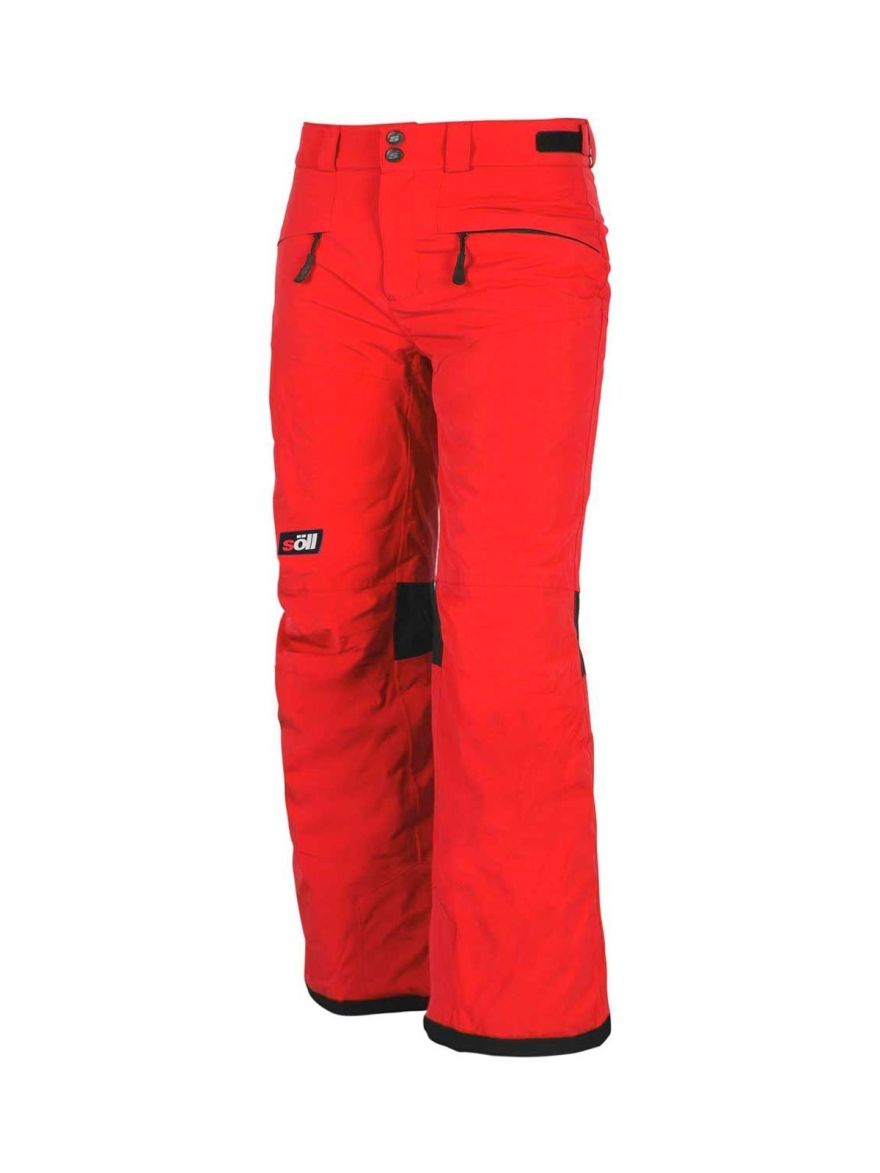Pantaloni da sci con due tasche con cerniera e ginocchiere articolate per un miglior movimento e per poter praticare sport. Possiedono una cintura regolabile. Pantaloni da sci rossi.